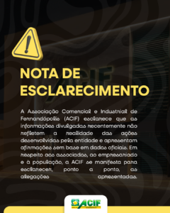 A Associação Comercial e Industrial de Fernandópolis (ACIF) esclarece que as informações divulgadas recentemente não refletem a realidade das ações desenvolvidas pela entidade e apresentam afirmações sem base...