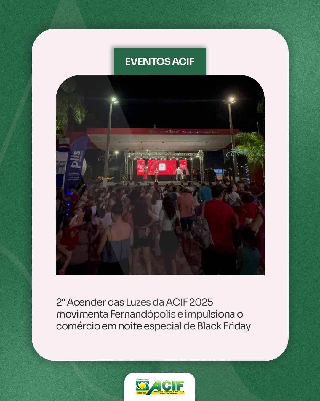 Este ano, o Acender das Luzes teve um impacto ainda maior para a cidade, pois ocorreu em plena Black Friday, data em que o comércio de Fernandópolis funcionou até 22h. O movimento intenso de consumidores no centro reforçou a importância do evento para aquecer as vendas, gerar fluxo e incentivar a população a prestigiar o comércio local. A união entre decoração natalina, programação especial e horário estendido trouxe resultados expressivos e fortaleceu ainda mais a economia da cidade.