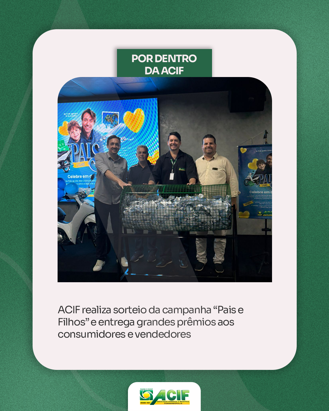 ACIF realiza sorteio da campanha “Pais e Filhos” e entrega grandes prêmios aos consumidores e vendedores