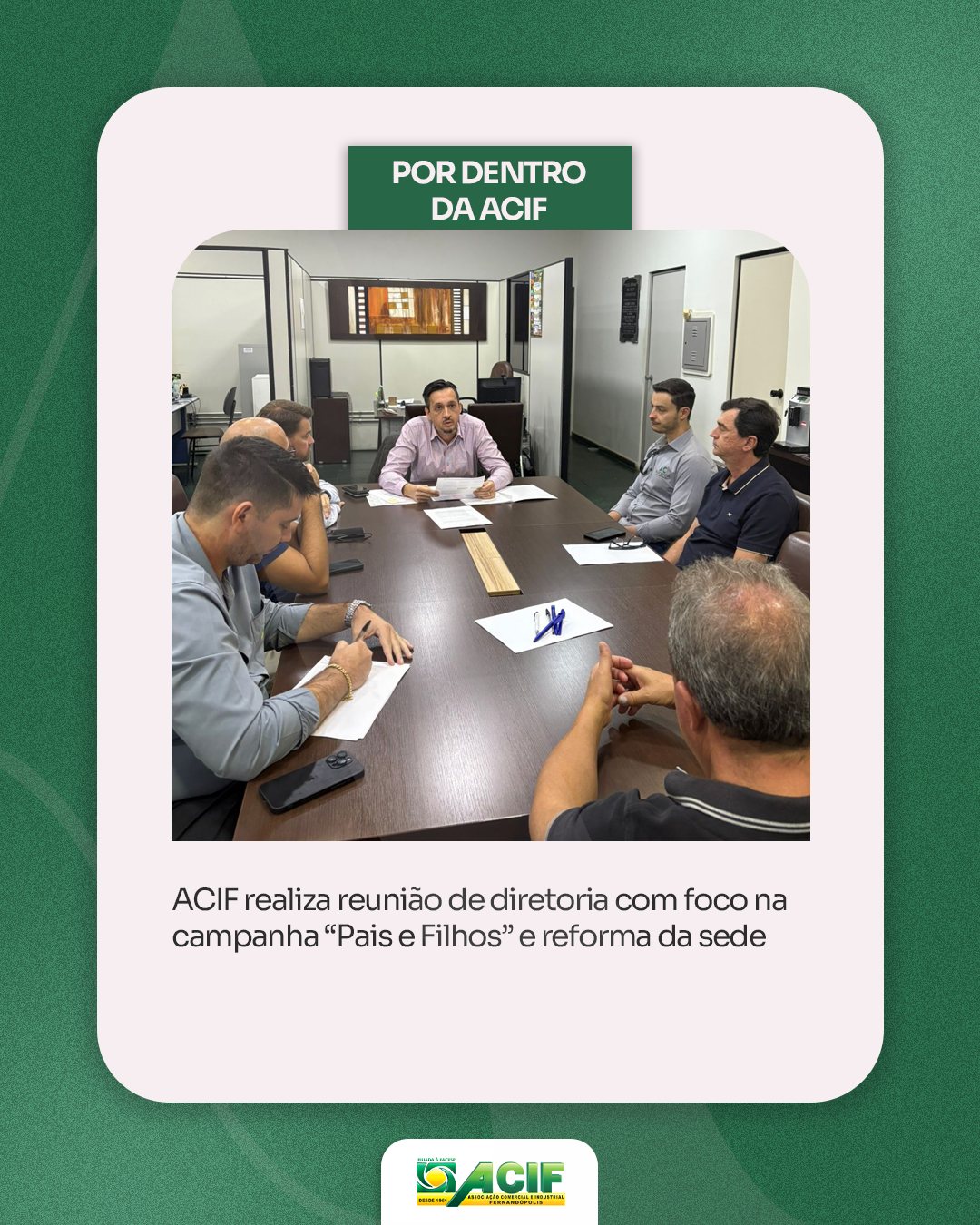ACIF realiza reunião de diretoria com foco na campanha “Pais e Filhos” e reforma da sede